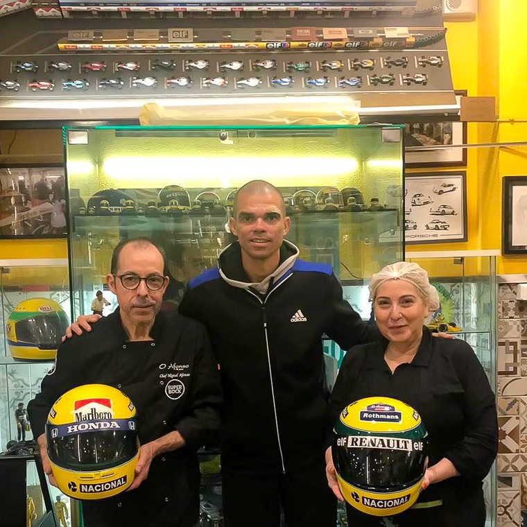 O espólio no “O Afonso” dedicado ao tricampeão do Mundo na F1 é impressionante e vai crescendo dia a dia. A multiplicidade de objetos alusivos ao grande piloto nascido em São Paulo é de tal ordem, que fazem a delícia de quem visita aquele espaço. Para lá das francesinhas, obviamente. O restaurante está aberto de terça-feira a domingo – folga à segunda-feira -, e por lá têm passado inúmeras personalidades ligadas aos mais variados setores da sociedade. Como ilustram as fotos, o ex-jogador luso-brasileiro Pepe, que recentemente, aos 41 anos, colocou um ponto final na carreira de futebolista, e o malogrado Fernando Gomes, por duas vezes Bota de Ouro e o melhor marcador da história do FC Porto, eram algumas das visitas do “O Afonso”.
