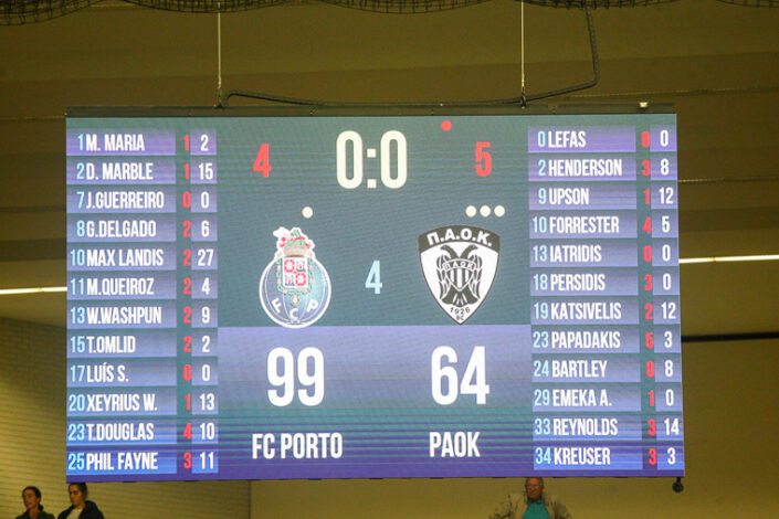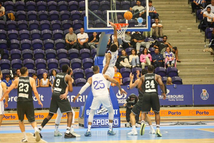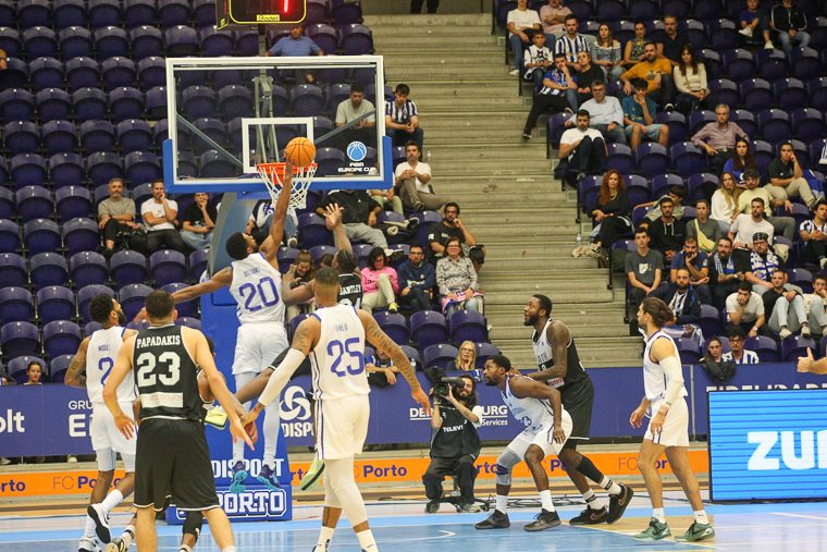Em jogo da fase de grupos da Taça Europeia de basquetebol, o FC Porto revelou-se uma equipa demolidora diante dos gregos do PAOK de Salónica. Foi um dragão de luxo aquele que se exibiu frente a um adversário com quem já havia perdido na Grécia (89-70) na segunda jornada da fase de grupos da FIBA Europe Cup. Os dragões iniciaram a partida com a forte disposição de bem cedo arrumar a questão a seu favor, para no primeiro período alcançarem uma importante vantagem de 19 pontos (42-23).