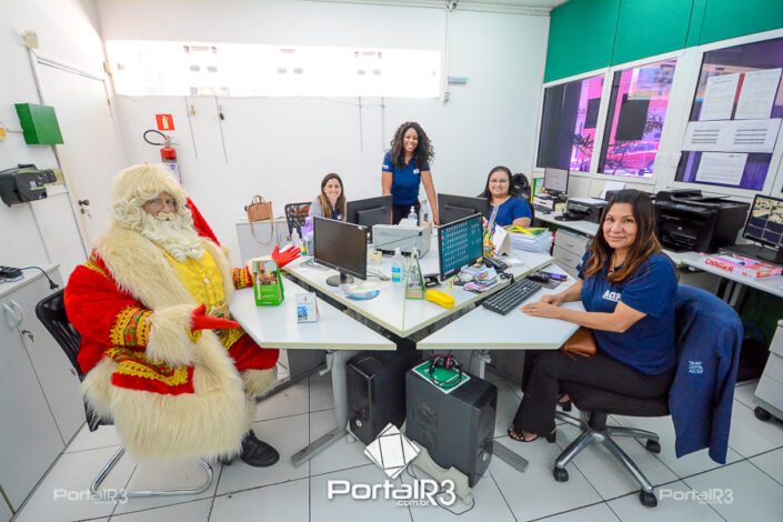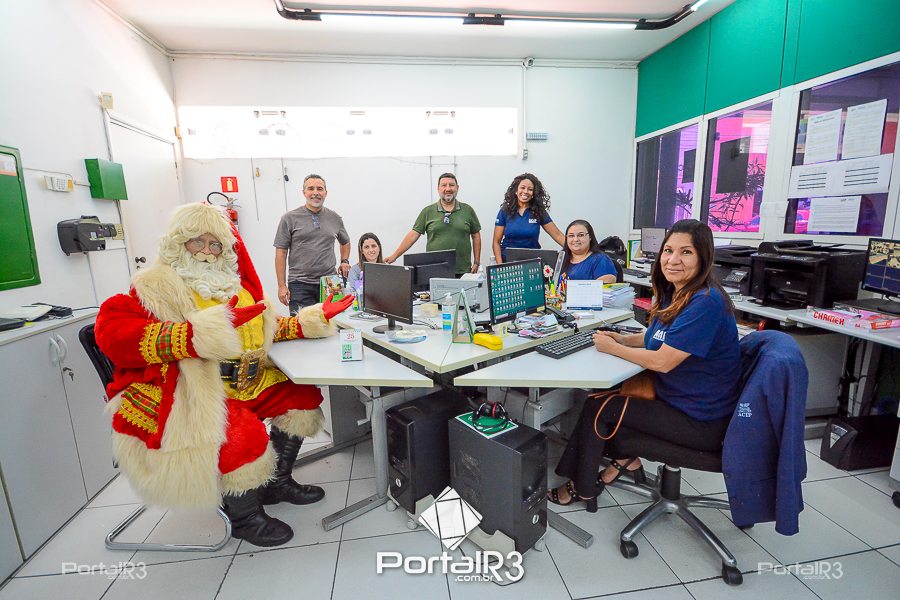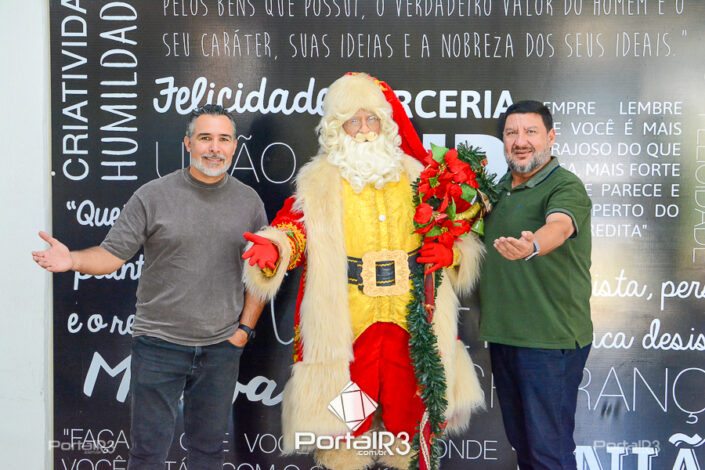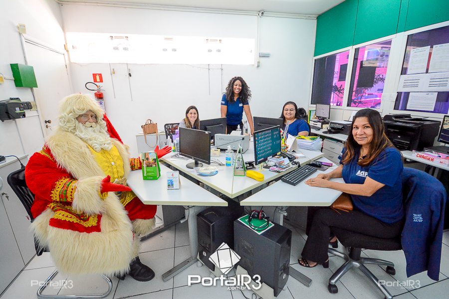 Nesta segunda-feira, o Bom Velhinho esteve visitando a sede da Associação Comercial e Industrial de Pindamonhangaba (ACIP), onde participou de uma gravação com o ecretário adjunto de Cultura e Turismo, Ricardo Flores, o presidente da ACIP, Mauro Almeida e o diretor a Associação, Douglas Louza.