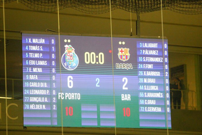 Nesta goleada diante de uma formação como o Barcelona, com um rico historial no seu palmarés, os azuis e brancos defenderam muito bem e conseguiram controlar o adversário, ainda que o primeiro golo só tivesse surgido aos nove minutos. A vantagem foi ampliada a três minutos do descanso, mas era notório o ascendente do FC Porto sobre o conjunto espanhol, para delírio de uma plateia entusiástica, onde marcou presença o presidente André Villas-Boas. O Barcelona reduziu a desvantagem (2-1) ainda no primeiro período, pelo que a expectativa no Dragão Arena estava ao rubro.