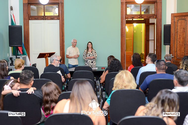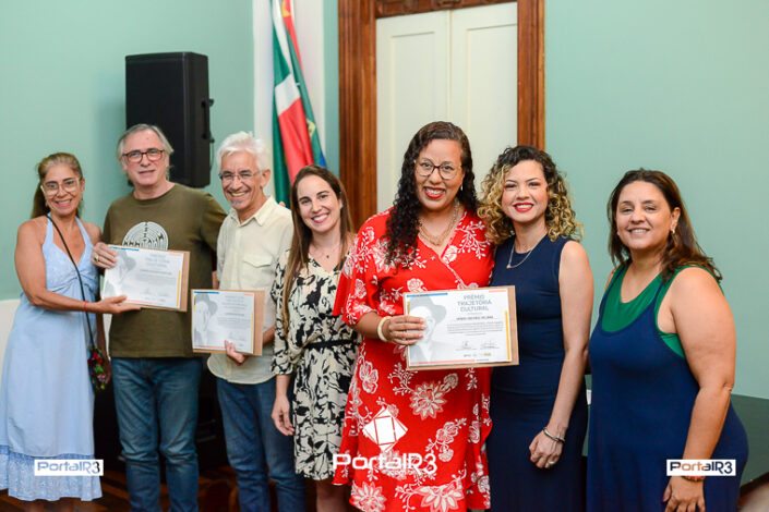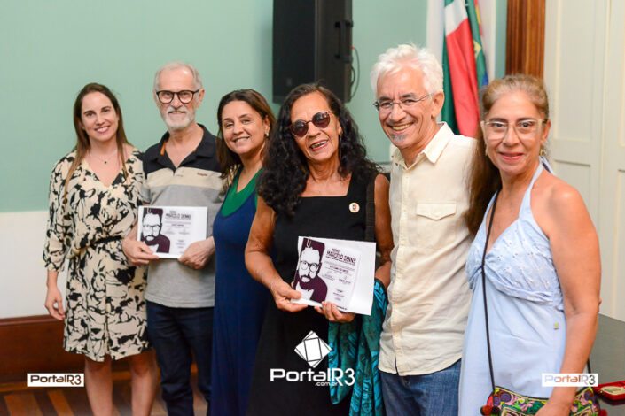 Após as palavras da presidente do Conselho de Cultura, Hérica Veryano, e do secretário de Cultura e Turismo, Alcemir Palma, a diretora de Cultura, Rebeca Guaragna, fez a leitura dos textos biográficos dos homenageados e os chamou à frente para receberem suas premiações.