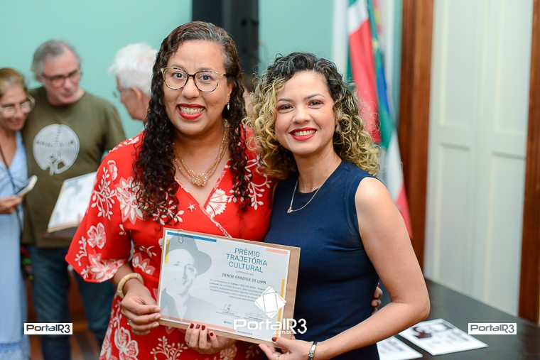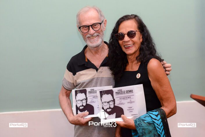 Alberto e Rute foram os agraciados com o prêmio Marcelo Denny. [Foto: Allan Modesto | PortalR3]Também foram entregues três certificados aos suplentes da Lei Paulo Gustavo. No segmento de Capacitação, o premiado foi Cladenir Dias. No segmento de Trajetória Cultural, os agraciados foram Alberto Eduardo Rego Lins e Denise Graziele de Lima.