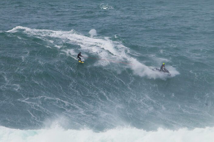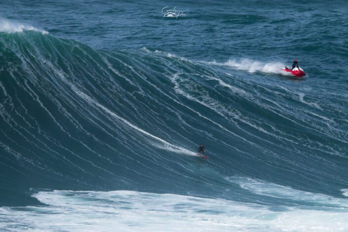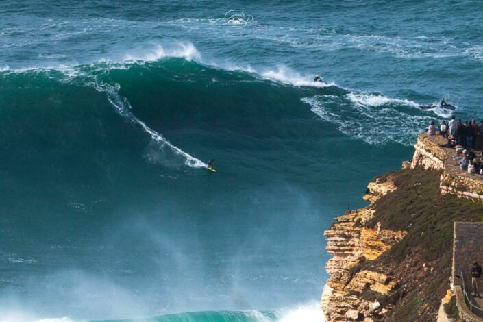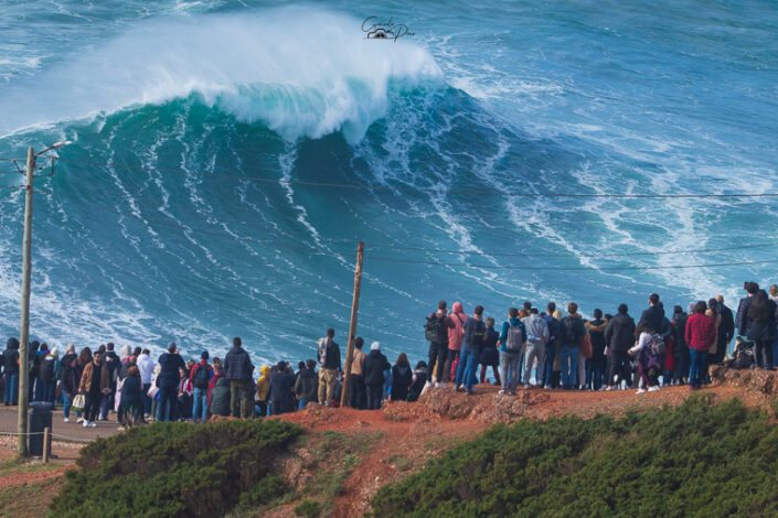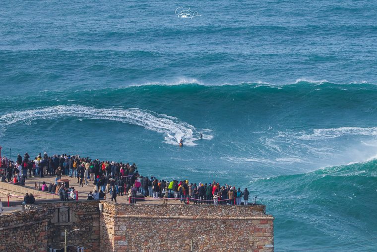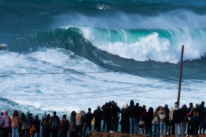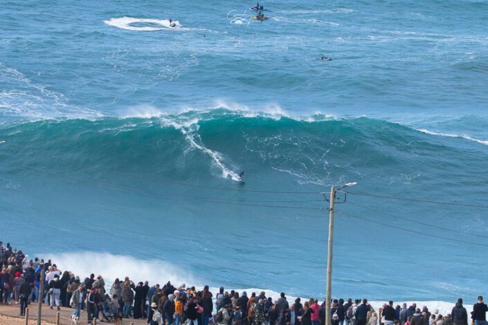 Na Nazaré a situação ganha uma dimensão bem maior, o que constituiu uma autêntica prova quase surreal que os destemidos surfistas profissionais tentam superar. Dentro de água, atletas de renome mundial aproveitam o momento para tentar bater recordes, para gáudio dos milhares de espectadores que se deslocam à cidade nazarena para assistir a um espetáculo único e de muita adrenalina. O alemão Sebastian Steudtner detém o recorde da maior onda surfada, um registo estabelecido em 2020 que atingiu a altura de 26,21 metros, precisamente na Praia Norte, na Nazaré.