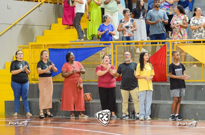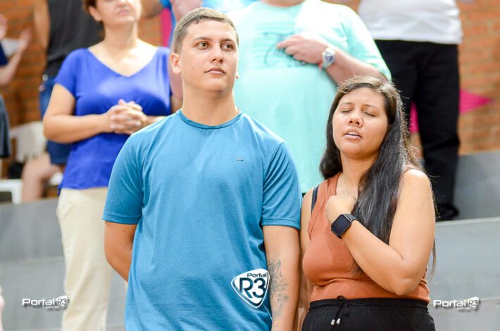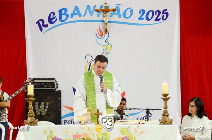 Missa de abertura do Rebanhão 2025 em Pindamonhangaba. [Foto: Alex Santos | PortalR3]Galeria com fotos da missa de abertura do Rebanhao 2025, celebrada pelo Padre Luiz Gustavo Sampaio Moreira, na noite do sábado (1º), no Centro Esportivo “João do Pulo”. A programação do evento pode ser conferida neste link.