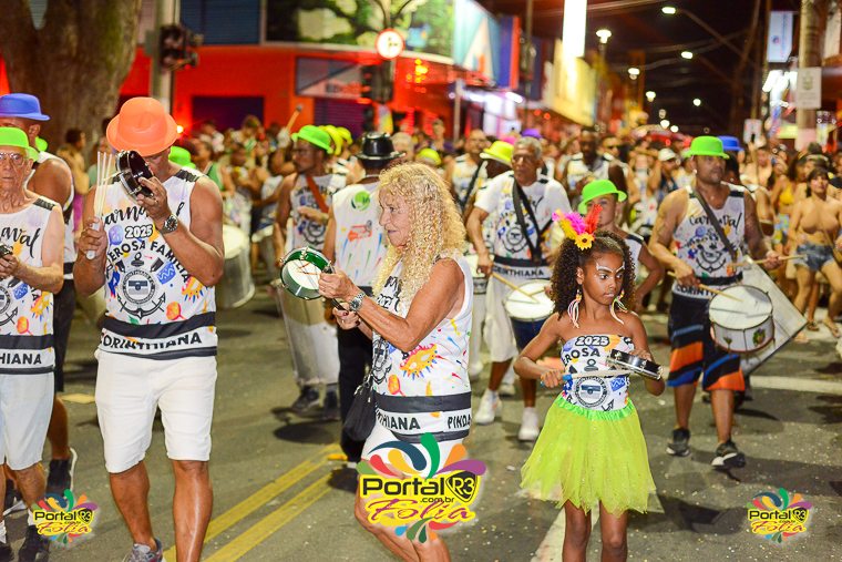 O bloco Corinthians desfilou no centro de Pindamonhangaba na noite da segunda-feira de carnaval embalando os foliões em uma noite agradável.