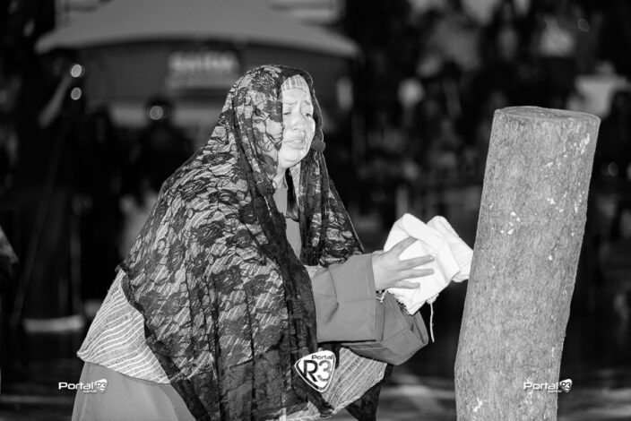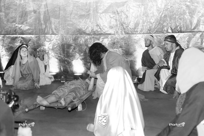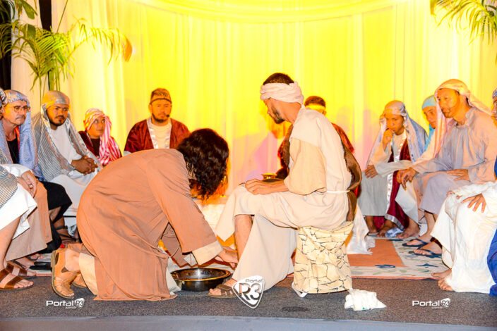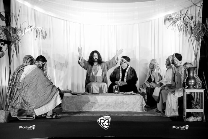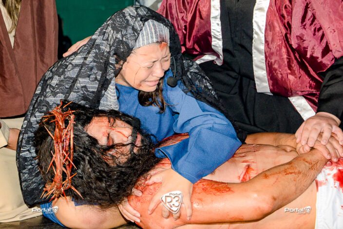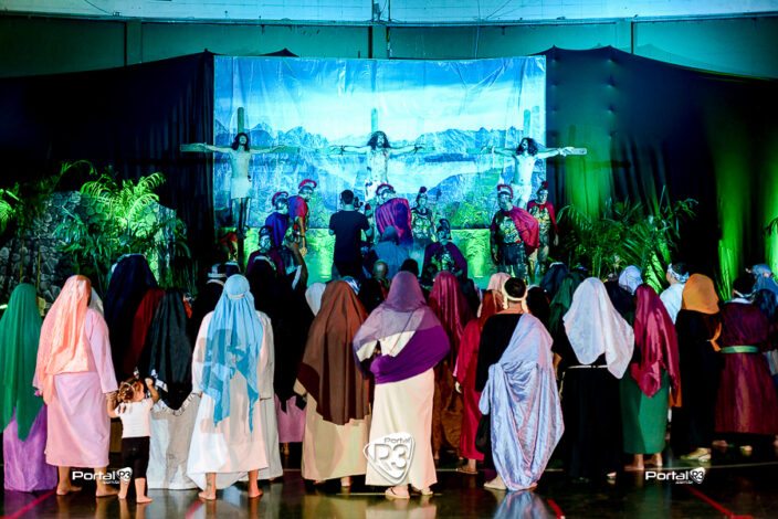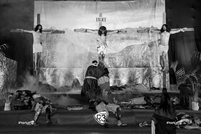 Encenação da Paixão de Cristo na Ferroviária em Pindamonhangaba. [Foto: Allan Modesto | PortalR3]Na noite da Sexta-feira Santa, 18 de abril de 2025, a Comunidade Aliança Jesus Agora (CAJA) apresentou mais uma vez a tradicional Encenação da Paixão de Cristo, no ginásio da Associação Atlética Ferroviária, em Pindamonhangaba. O espetáculo teve início às 18h30 e emocionou o público com uma representação fiel dos últimos momentos da vida de Jesus.