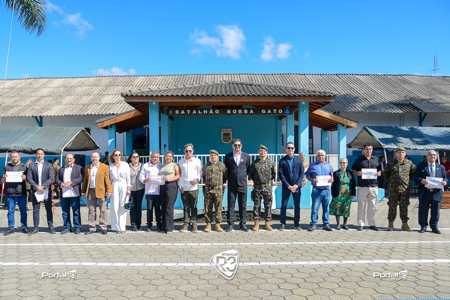 Nesta quinta-feira, 15 de maio, o coronel Eric Monios, comandante do Batalhão Borba Gato, recebeu autoridades civis, militares e convidados especiais para a celebração dos 79 anos da unidade. A cerimônia foi marcada pela entrega de diploma de Colaborador Emérito do Exército Brasileiro e de “Amigo do Batalhão Borba Gato”.