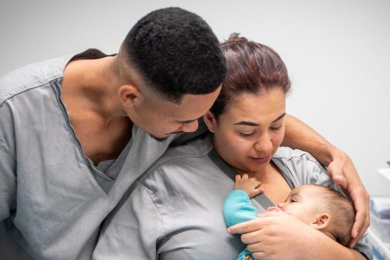 EMOÇÃO — Millena Brito, mãe da bebê que recebeu a infusão em Brasília (DF), descobriu o diagnóstico de AME aos 13 dias de vida da filha. Para ela, o tratamento oferecido pelo SUS foi o melhor presente que poderia receber. “É emocionante, porque a gente nunca perde a esperança como mãe. Ver minha filha, daqui pra frente, poder andar, correr, falar e me chamar de mãe vai ser excelente. Posso viver a maternidade de uma forma diferente”, afirmou Millena, emocionada.