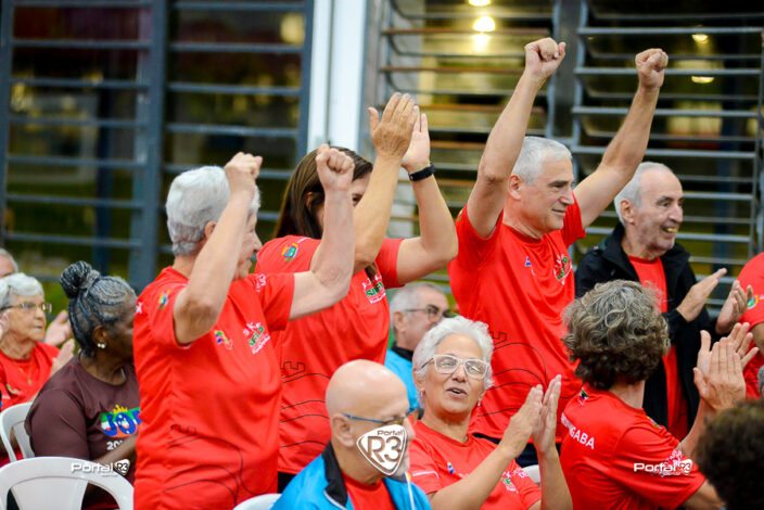 Apresentação da equipe de Pindamonhangaba para os Jogos da Melhor Idade 2025. [Foto: Allan Modesto | PortalR3]