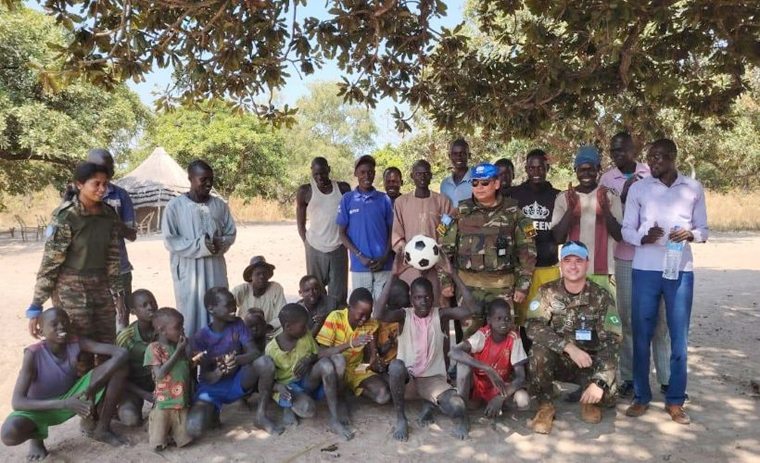 Atualmente, o Brasil mantém sete militares integrando o Componente Militar da UNMISS, com funções essenciais nas áreas de inteligência, planejamento operacional, capacitação de tropas locais, gestão administrativa, controle de material e monitoramento da segurança e da situação humanitária. Além disso, muitos desses profissionais têm realizado, de forma voluntária, ações de cunho humanitário em apoio à população local, especialmente crianças em situação de vulnerabilidade.