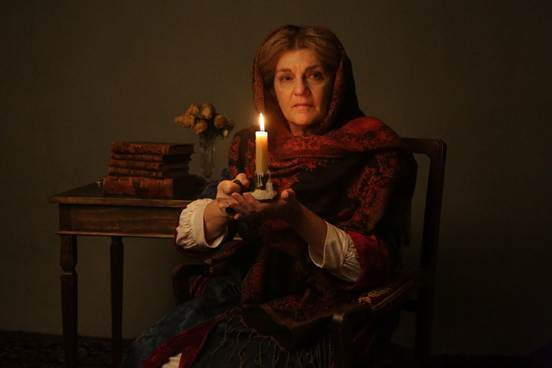 À luz de uma vela, o cenário revela um ambiente simples, no frio de Londres do final do século XIX: um recorte do quarto de Blavatsky, em seu último dia de vida.