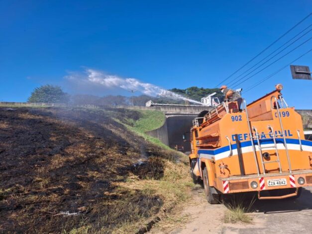 Na manhã desta terça-feira (17), uma ocorrência de fogo em vegetação na avenida Bandeirantes, às margens da Rodovia Presidente Dutra, mobilizou uma ação rápida das equipes da Defesa Civil de Taubaté.