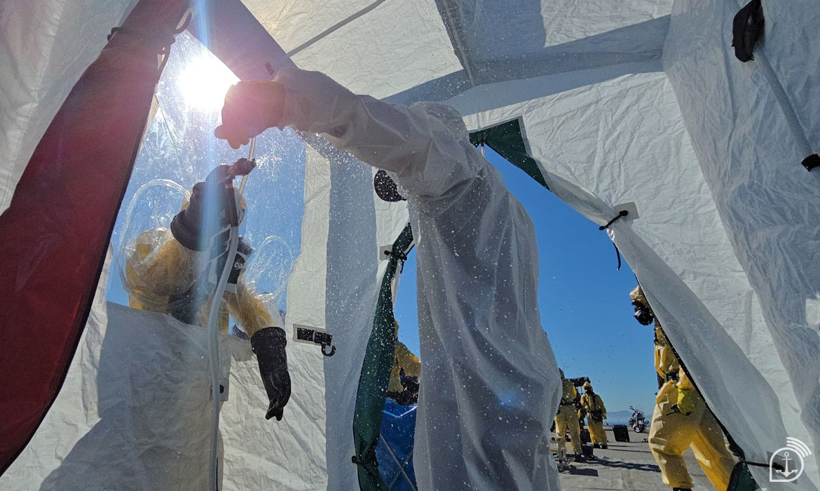 Um dos principais momentos do exercício foi a simulação de um ataque químico contra o comboio de uma autoridade. A ação envolveu o reconhecimento e a identificação da ameaça, a delimitação da área contaminada, a evacuação, além da descontaminação de pessoal e material. A atividade também contou com demonstrações dos equipamentos que serão utilizados durante o evento.