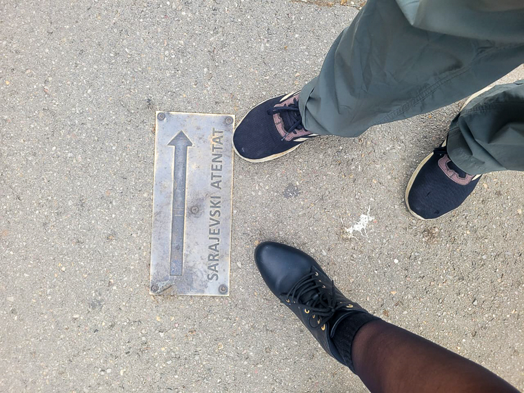 Ainda na Bósnia, ao chegarmos em Sarajevo, nos deparamos com marcas profundas de um passado recente: muitas casas ainda ostentam cicatrizes da guerra de 1993, com paredes cravejadas de projéteis — símbolos materiais de um tempo catastrófico para o país.