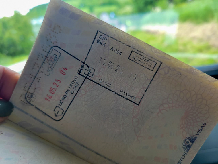Na saída da Bósnia para Croácia novamente, os termômetros marcavam 29°C — as temperaturas mais altas da nossa viagem até então! Seguimos para o sul, cruzando a fronteira com a Croácia. Tudo ocorreu de forma tranquila, mesmo com a solicitação de documentos e com o detalhe de termos alugado o carro na Eslovênia.