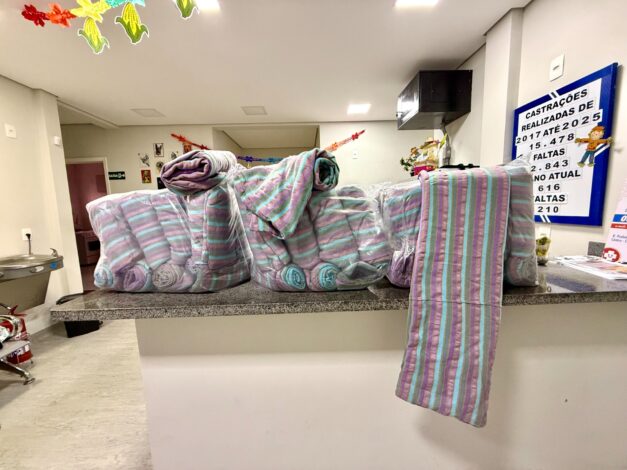 Cada cobertor é um gesto de carinho e respeito aos animais abrigados”, destacou a presidente do Fundo Social, Taiana Prado.