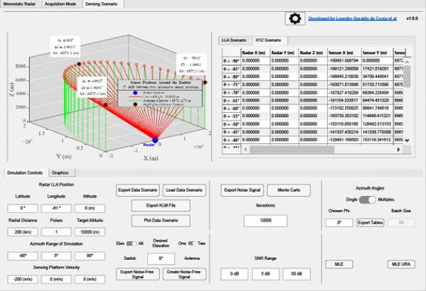 O simulador permite a recriação virtual de diversos cenários complexos de combate eletrônico, incluindo interferências do tipo Range Gate Pull-Off (RGPO) e técnicas passivas baseadas em abertura sintética com o uso de antena única. Esses recursos tornam a ferramenta essencial para estudos avançados e o desenvolvimento de soluções tecnológicas no setor de defesa.