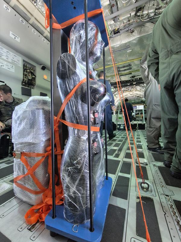 Outra frente da missão PERIGEU foi dedicada à avaliação da distribuição das doses de radiação em diferentes áreas da aeronave. Para isso, diversos medidores foram instalados em pontos estratégicos do vetor utilizado no transporte, com o objetivo de analisar a variação da exposição conforme a localização interna. Esses dados são essenciais para caracterizar o ambiente radioativo no interior da aeronave e servirão de base para estudos de dose em tripulantes e passageiros.