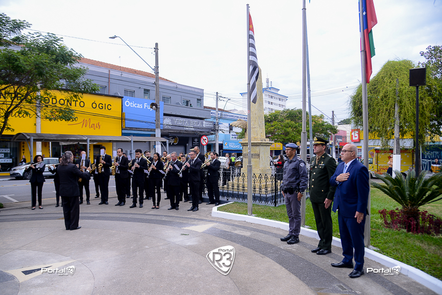 O tradicional hasteamento das bandeiras no Obelisco da Praça Monsenhor Marcondes marcou, na manhã desta quarta-feira (10), o início das comemorações dos 320 anos de emancipação político-administrativa de Pindamonhangaba.