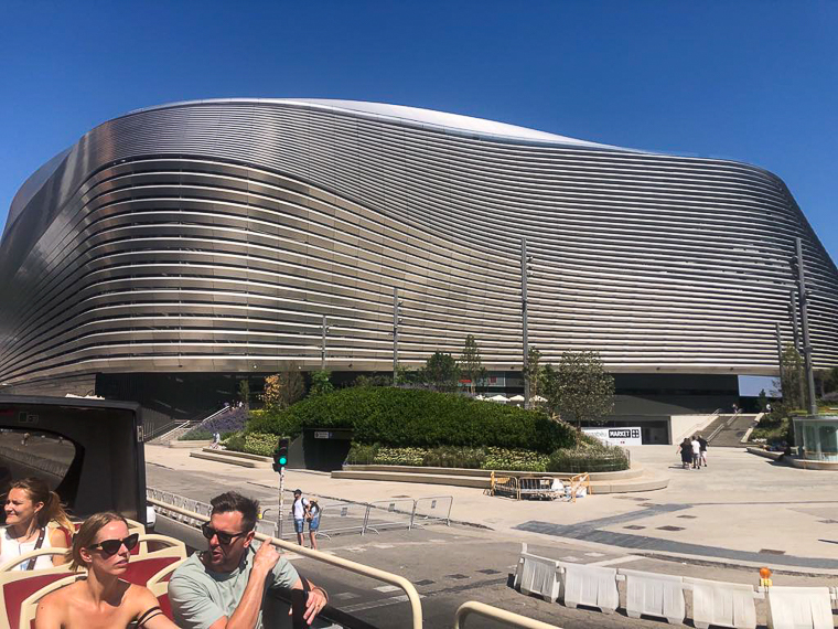 Aliás, logo que o meu caro amigo Cláudio Antunes baixe esta publicação, vou fazer chegar à Vera e à Maria, conforme prometido, o relato da viagem. Com principais pontos turísticos, o tour oferece a possibilidade de se visualizar monumentos lindíssimos como a Puerta de Alcalá, a Puerta del Sol, o Museu do Prado e o Estádio Santiago Bernabéu, entre outros pontos de interesse turístico de eleição. O imponente recinto do Real Madrid impressiona pela sua arquitetura e dimensão, com capacidade para 84 mil espectadores. O estádio sofreu alterações de vulto, mas não é completamente fechado, como à primeira vista parece, pois inclui um teto retrátil. O valor das obras atingiu um custo elevadíssimo, ascendendo aos dois mil milhões de euros, quantia dividida por três empréstimos e um financiamento de uma empresa, que ficará com 30% das receitas nos próximos 20 anos.