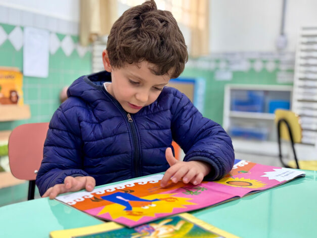 “Gosto muito de ler, e gosto de ler a história dos três porquinhos porque eles são irmãos e vão um na casa do outro. Aprendi a ler com a professora aqui na escola, ela ia mostrando cada letra e falando o ‘sonzinho’ das letras!”, disse Vicente.