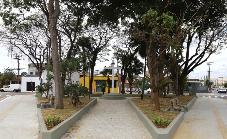 Na praça, foi feita a reforma completa, incluindo nova iluminação em LED, calçada com acessibilidade, pintura, plantio de grama e vegetação e sinalização viária.