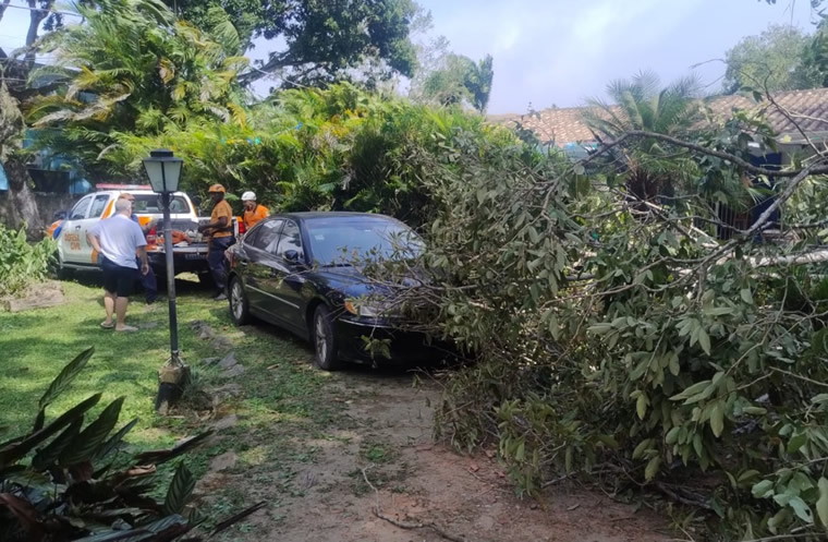 As equipes estão em campo, de Costa Sul a Costa Norte, fazendo o cortes dessas árvores e liberação das vias com apoio da Secretaria de Serviços Públicos