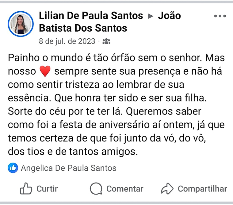 Em 2019, quando ele faleceu, eu, minha mãe, meus irmãos, sobrinhos e cunhados não deixamos de ver a beleza e a gratidão até nos dias aparentemente ruins. Porque, com ele, aprendemos que a vida é maior do que as circunstâncias. Ele não reclamou, mesmo na dor. Escolheu ver beleza.