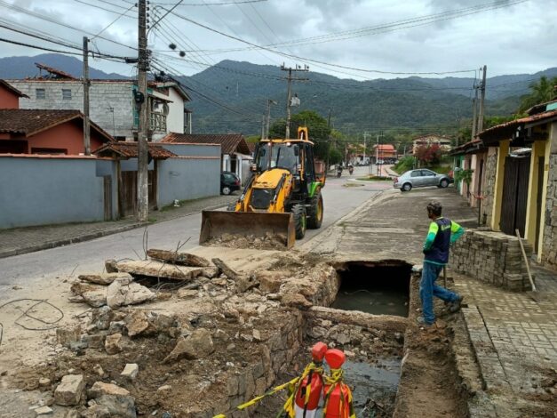 A ação ocorre após um incidente registrado na última semana, quando um caminhão de coleta de lixo afundou a laje existente sobre o córrego que passa pelo local.