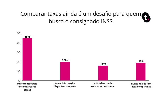 Vale destacar que uma pesquisa realizada com leitores do blog da plataforma meutudo constatou que 45% dos entrevistados tiveram dificuldade em comparar taxas de consignado INSS, apontando que o principal obstáculo é o tempo necessário para encontrar juros mais baixos.