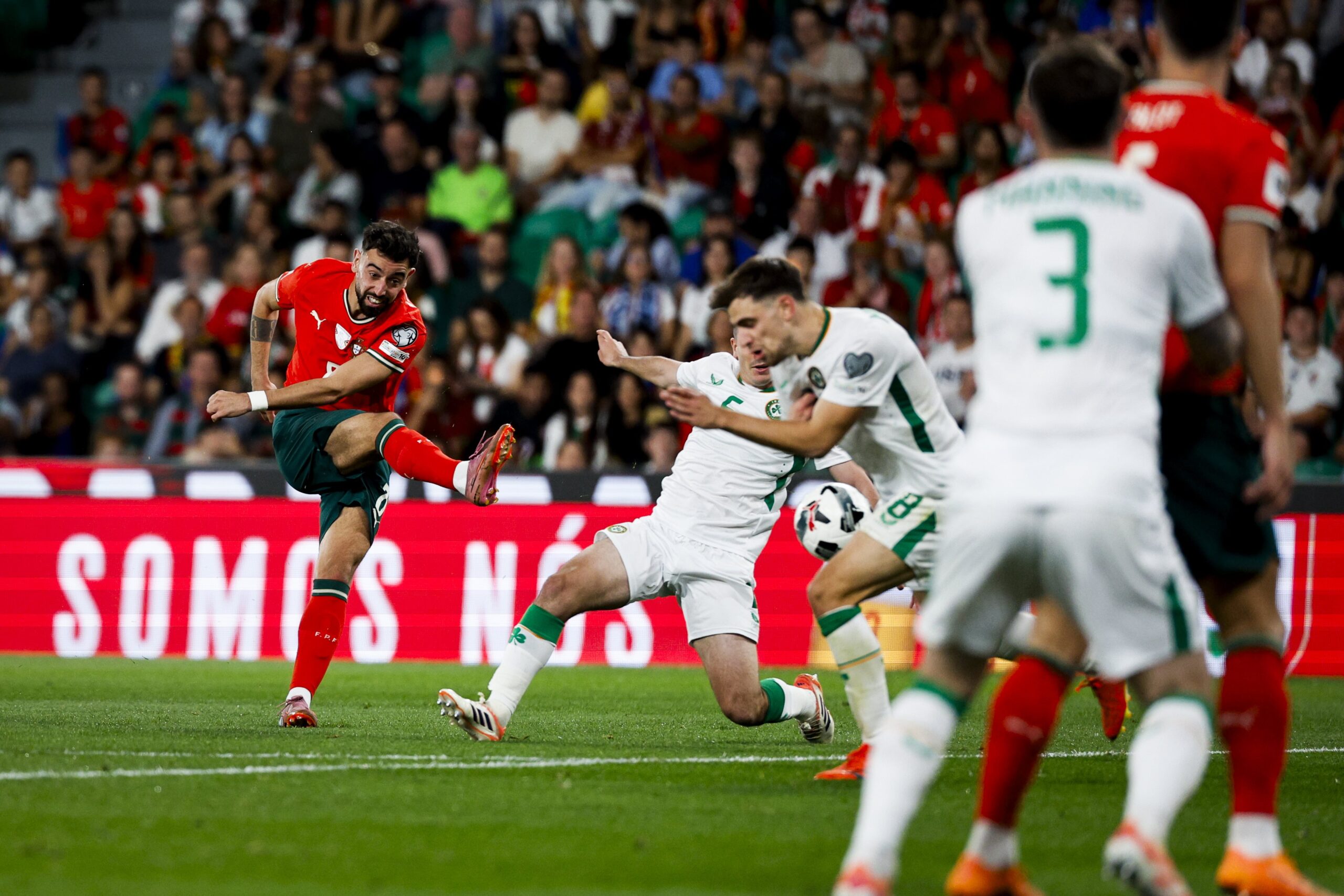 No primeiro dos dois encontros que Portugal disputa no Estádio José de Alvalade, em Lisboa, o conjunto orientado pelo espanhol Roberto Martínez levou de vencida a República da Irlanda, com o único golo a ser apontado por Rúben Neves, a atuar no Al-Hilal da Arábia Saudita. O médio português acabou por ser bem-sucedido ao acorrer determinado de cabeça a uma bola saída dos pés de Francisco Trincão, dedicando o remate vitorioso e o triunfo a Diogo Jota, desaparecido na sequência de um trágico acidente de viação em Espanha no passado mês de julho. Quis o destino que assim fosse, pois nem sequer é um dos titulares indiscutíveis do selecionador, mas fez questão de ficar com o número 21 de Jota. Portugal tem praticamente assegurada a qualificação para o Mundial de 2026 a realizar em diversos estádios dos Estados Unidos, México e Canadá.