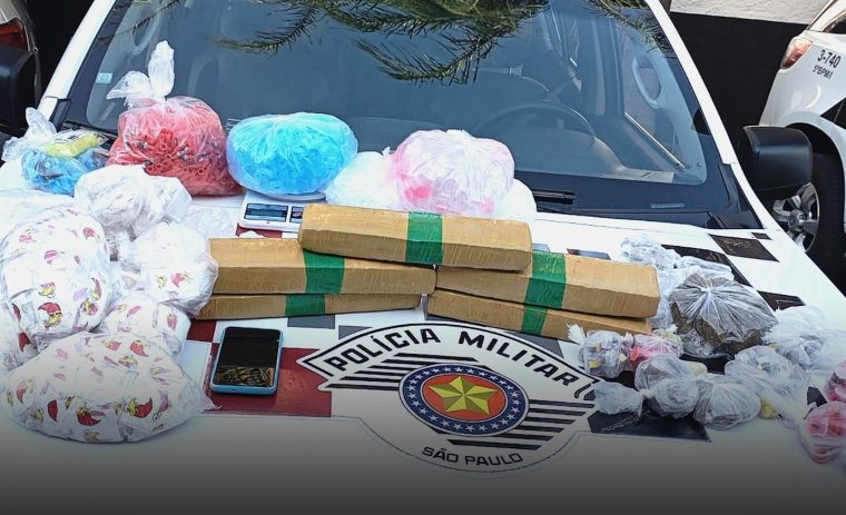 De acordo com a corporação, a equipe recebeu uma denúncia via COPOM sobre movimentação suspeita em uma residência. No local indicado, os policiais localizaram uma grande quantidade de entorpecentes e materiais usados no preparo e comercialização das drogas.