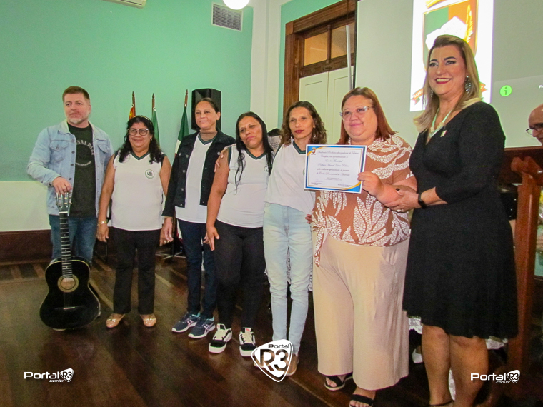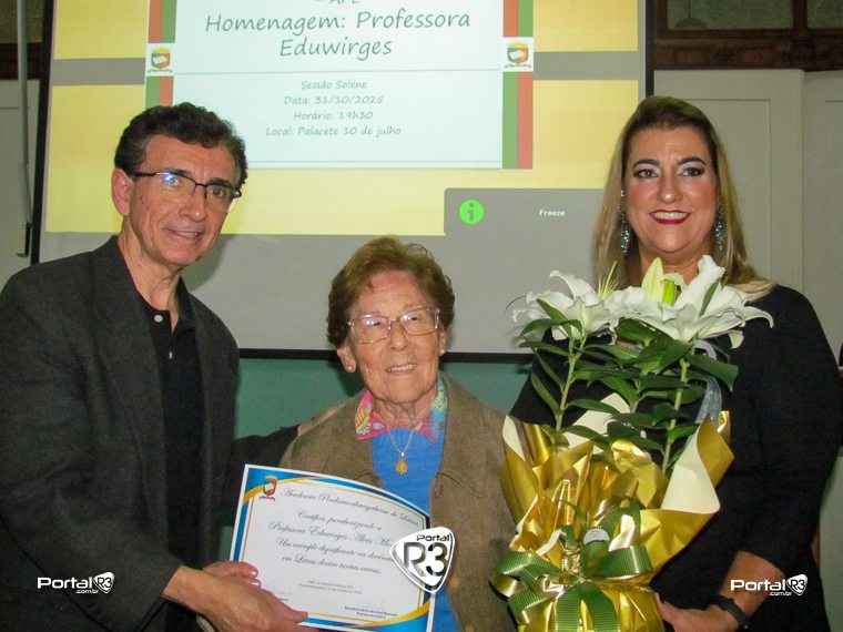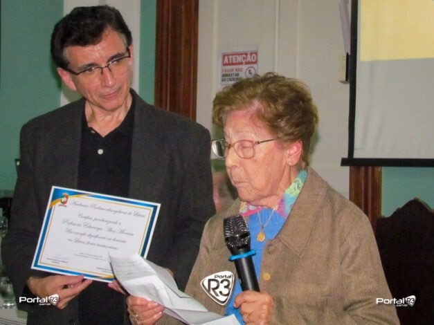 Na sequência, o ator, professor, filósofo, escritor e acadêmico titular Fábio Mendes prestou homenagem à professora Edwirges Alves Moreira, representando todos os educadores pelo Dia do Professor. A homenageada fez uso da palavra e agradeceu emocionada pelo reconhecimento.