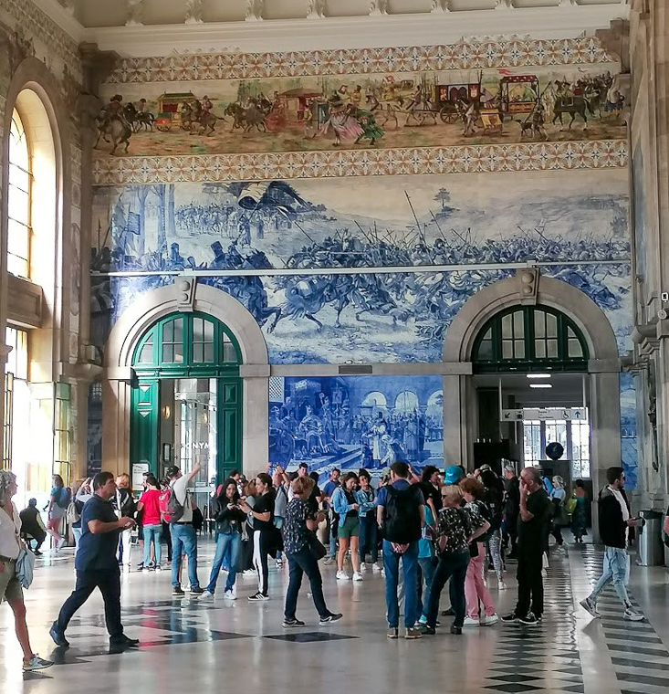 As mais de 22.000 peças do átrio da Estação de São Bento foram pintadas entre 1905 e 1908 e retratam parte da história de Portugal, bem como variados costumes, essencialmente campestres. Trata-se da maior representação de azulejos da rede ferroviária nacional, onde podem ser apreciadas cenas como a Batalha de Aljubarrota e a Conquista de Ceuta, para lá de diversos eventos monárquicos, religiosos e rurais. A evolução dos transportes e temas alegóricos como a Indústria, as Belas Artes ou a Literatura, também estão expostos aos olhos dos curiosos, que não perdem o momento para apontar as objetivas a um tesouro de valor patrimonial incalculável.