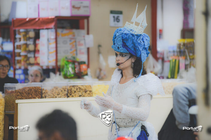 Espetáculo de rua da companhia Aflorar Cultura, de São Paulo, foi apresentado neste sábado (8) dentro do Mercado Municipal devido ao tempo chuvoso, levando poesia e encantamento ao público.