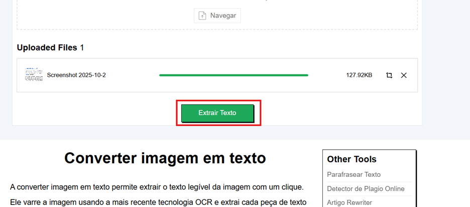 Passo 1: Abra a ferramenta e carregue a imagem.