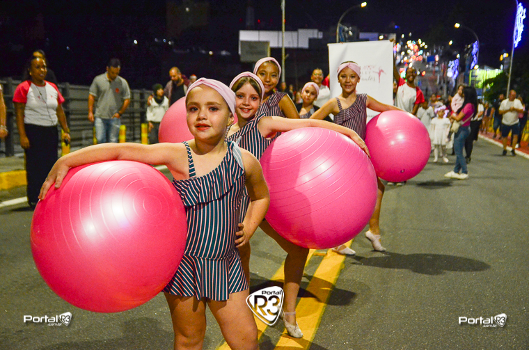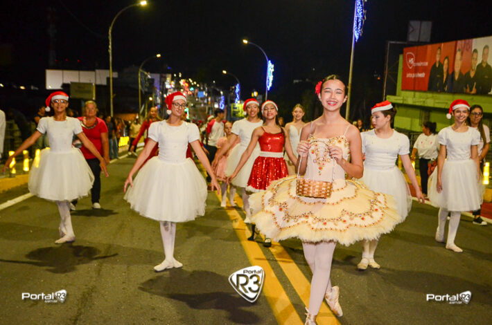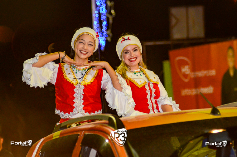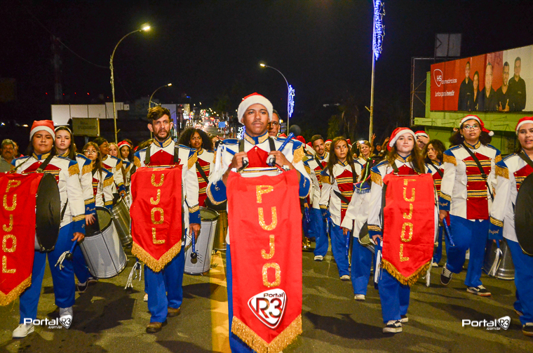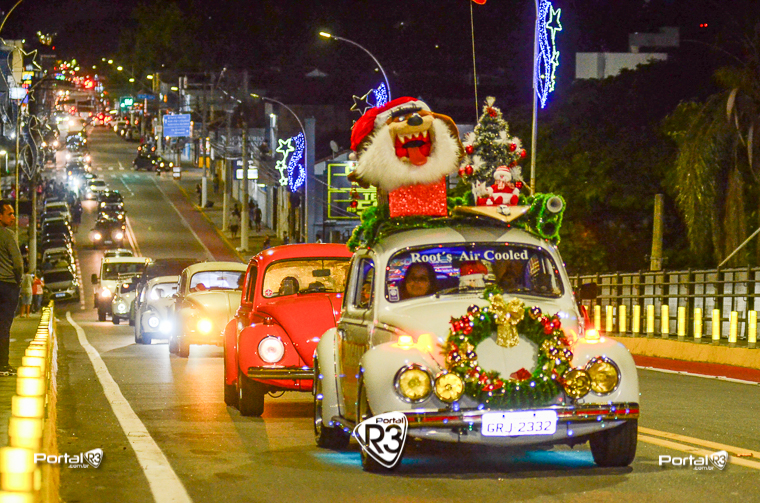 Papai Noel desfilou em um calhambeque ao lado da Mamãe Noel, acompanhado por duendes, personagens infantis, tratores decorados e a Carreta do Dogão. A animação tomou conta do trajeto, que também contou com a Fanfarra da Escola Estadual Alfredo Pujol e a apresentação de cerca de 40 bailarinas.