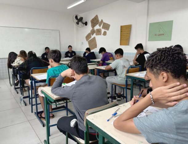 A aplicação ocorreu simultaneamente em três unidades escolares distribuídas pelo município, garantindo organização e acesso para os participantes.