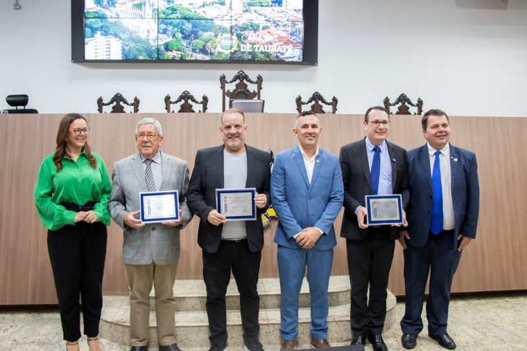 Na última solenidade do ano para entrega de títulos de cidadania taubateana, realizada dia 27, receberam a honraria o deputado estadual Rafa Zimbaldi, o médico pediatra Ciro João Bertoli e o líder e articulador político e social Marcio Claudio Scandiussi Leonel.
