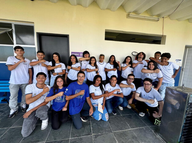 Ao final, cada adolescente posou para a foto oficial mostrando nos braços os nomes das empresas que os receberão como jovens aprendizes — símbolo de conquista e orgulho para eles, suas famílias e toda a equipe da Fundhas.