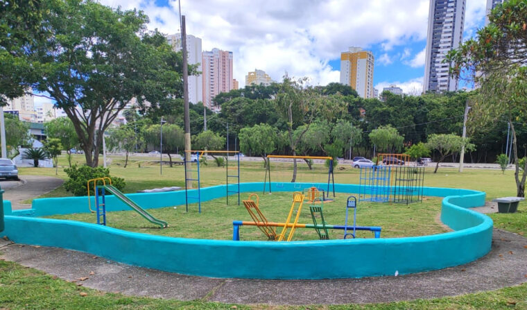 Academias ao ar livre, escadas, gradis, parquinhos infantis, quadras, muros e muretas passam por manutenção completa, ganhando novas cores e aspectos renovados.