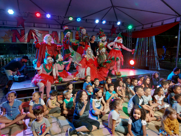 Aos sábados, as apresentações infantis celebram o espírito do Natal, com música ao vivo no coreto da Praça Coronel Cunha Lara.