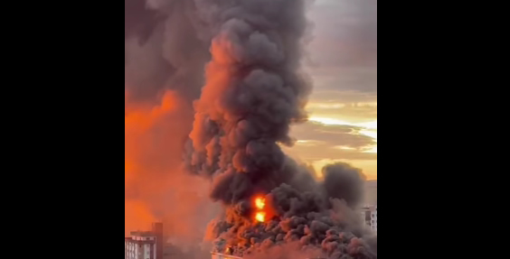 Vídeos compartilhados em redes sociais mostram que o incêndio pode ser visto a quadras de distância, com uma grande nuvem escura. O combate às chamas está em andamento.