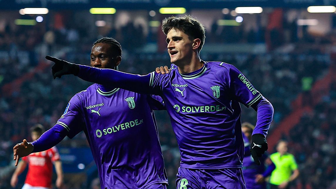 A partida até nem começou mal para as águias, pois o atacante Vangelis Pavlidis – sempre ele – teve a hipótese de abrir o marcador, logo aos 4 minutos, a cruzamento do bósnio Amar Dedic, valendo a enorme intervenção do guardião checo Lukas Hornicek. E foi tudo, praticamente, o que de relevante fez o Benfica em toda a primeira parte, dominado por um adversário onde algumas figuras brilharam a grande plano. Primeiro foi o atacante espanhol Pau Víctor, contratado ao Barcelona por 12 milhões de euros, que aos 18 minutos abriu o marcador, após um passe milimétrico do uruguaio Rodrigo Zalazar -, de nada valendo a tentativa de desarme de Otamendi, tanto mais que o argentino já tinha visto o cartão amarelo e podia incorrer numa falta grave. A verdade é que de nada lhe serviu a prudência, pois já perto do final do encontro viria a ser expulso por protestos, ficando assim impedido de atuar na próxima partida com o FC Porto para a Taça de Portugal.