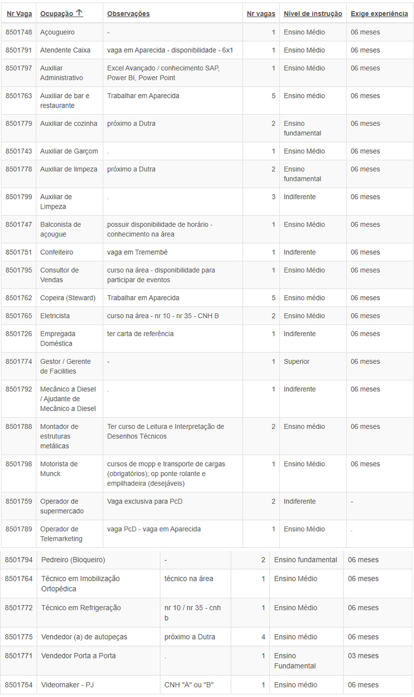 O Posto de Atendimento ao Trabalhador (PAT) de Pindamonhangaba divulgou nesta sexta-feira, 09 de janeiro de 2026, as vagas de emprego disponíveis no município e região. A lista é atualizada diariamente e contempla funções em diferentes níveis de escolaridade e experiência, com oportunidades em serviços, comércio e setores técnicos.