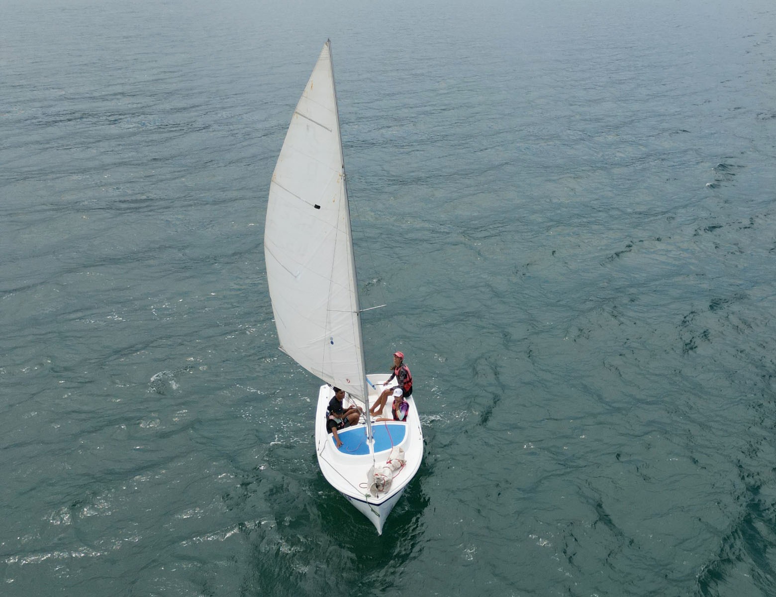 Nas aulas de vela, os participantes aprendem sobre o posicionamento do leme, a preparação e o uso das cordas que direcionam as velas, além de outras técnicas importantes para a condução da embarcação.