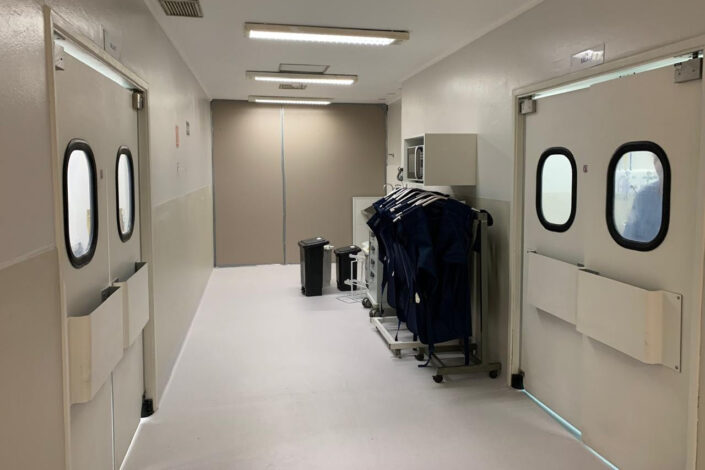 Ainda nesses espaços, foram instaladas placas vinílicas nas paredes, que, além de reforçarem a proteção, facilitam e aprimoram os processos de higienização.