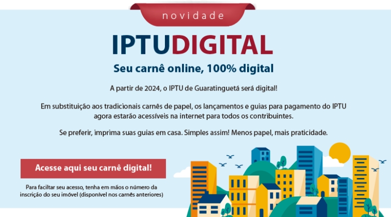 Guaratinguetá liberou nesta quinta-feira (5) a emissão do carnê do IPTU 2026. O documento já está disponível de forma online, no site oficial do município, e pode ser acessado mediante a informação do número da inscrição cadastral do imóvel.